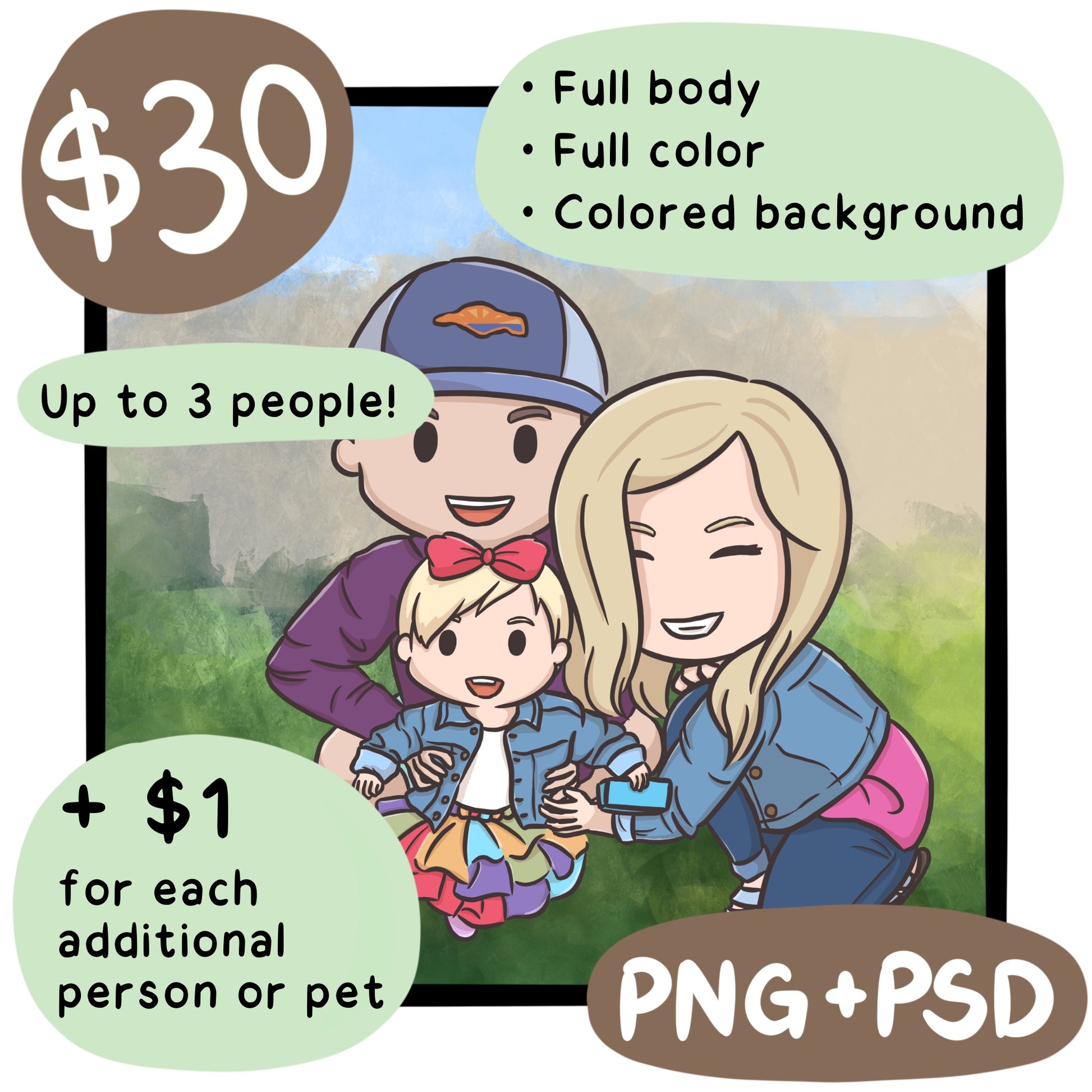 Full Body Personalized Cartoon Portrait - PNG + PSD Colored Background